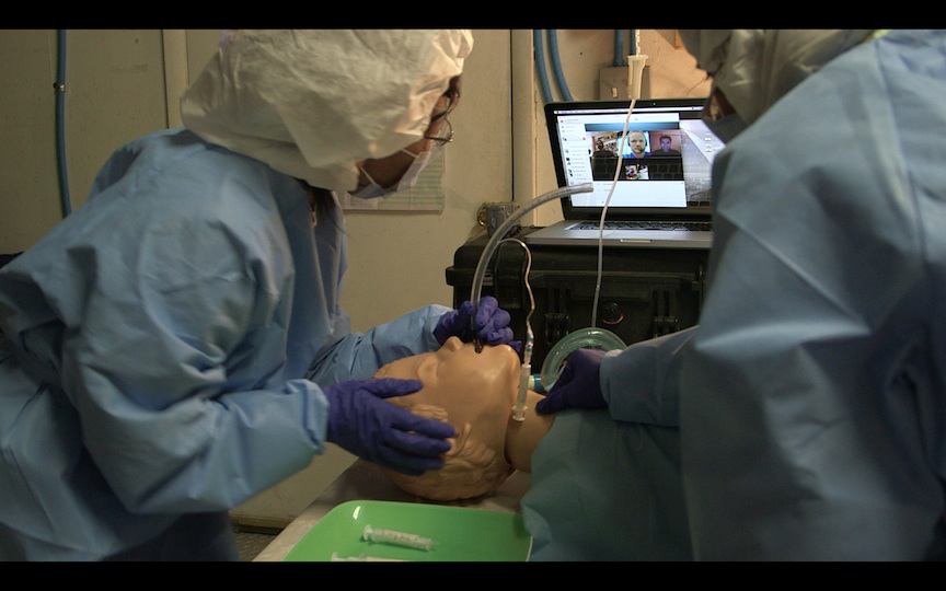In early January 2014, a simulation scenario of a medical emergency situation at an extraterrestrial Martian colony was conducted. The members of MarsCrew134 analog astronauts (led by Medical Crew Officer, Dr Susan Jewell) and Crew133 (led by Medical Crew Officer Dr Matthieu Korowmoski) at the Mars Desert Research Station, MDRS, and medical team, Drs Ceraolo and Andrian Golemis (medical team sponsored by ESA Concordia Station in Antarctica) had the opportunity to participate and collaborate in various training sessions with anesthesiologists, surgeons and space medicine physicians through a delayed video feed (to simulate the distance from Earth to Mars). The intent was to simulate remote assistance for anesthesia and surgical procedures beyond that of the Crew’s immediate training.